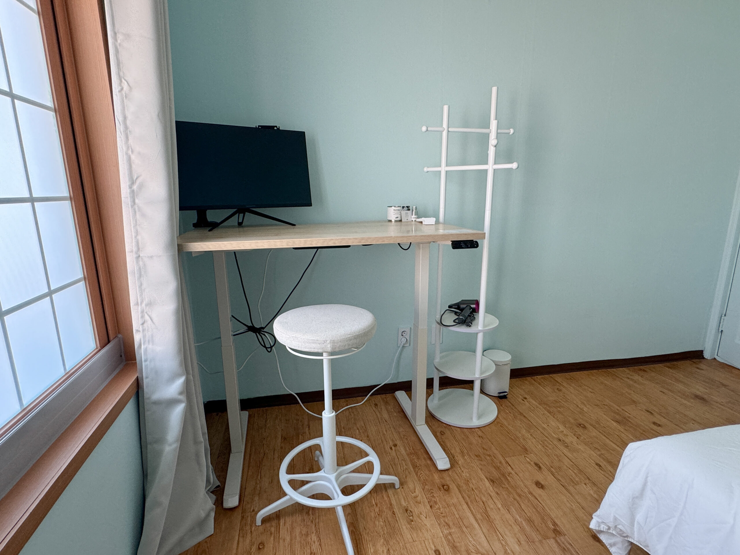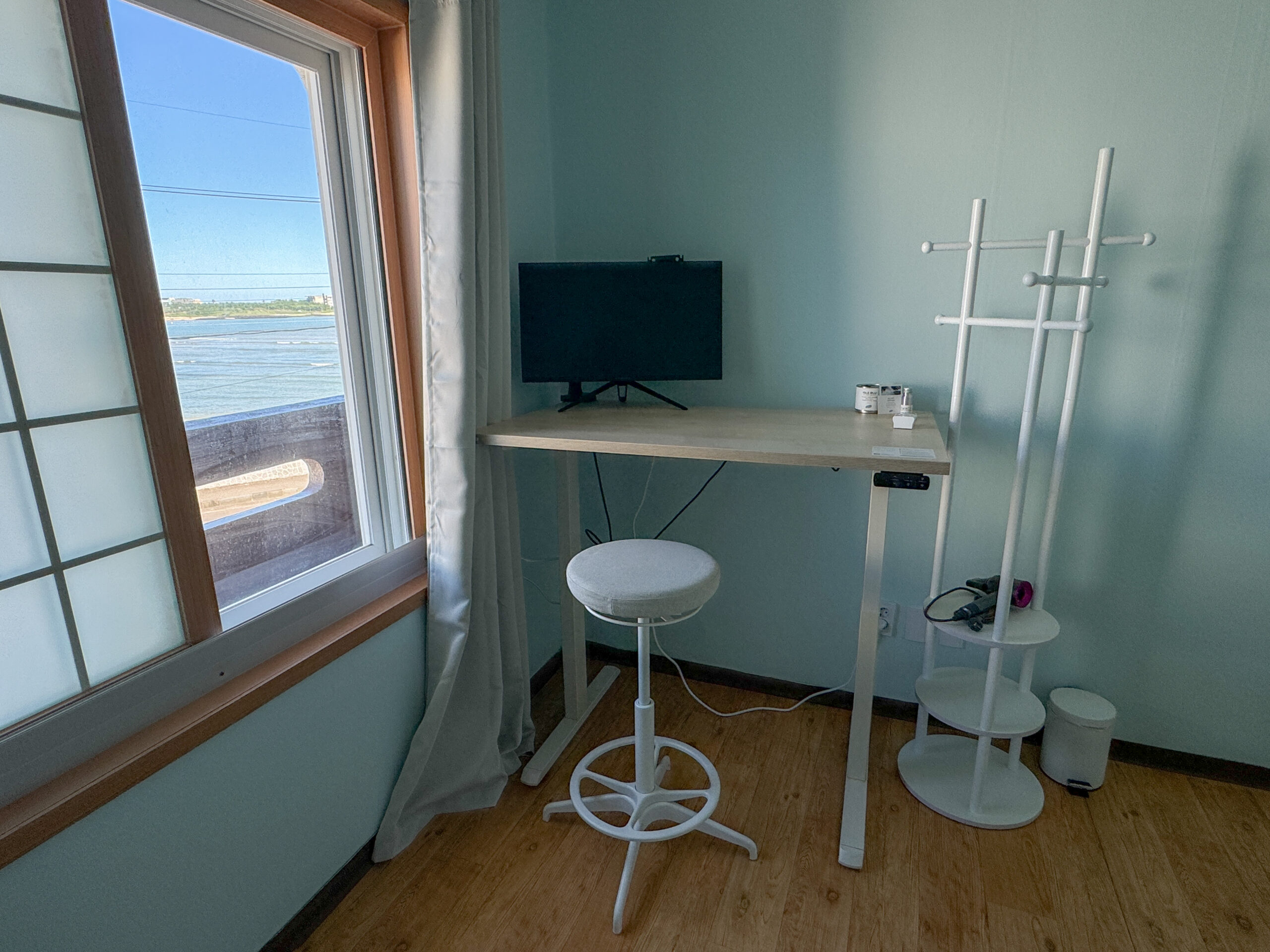 Wake up to the scenic views of Sinyang beach. The room has a calming coastal vibes, with cotton bedding, strong hairdryer and custom locally made room scent. To comfortably work there is also a computer screen and electric standing desc.