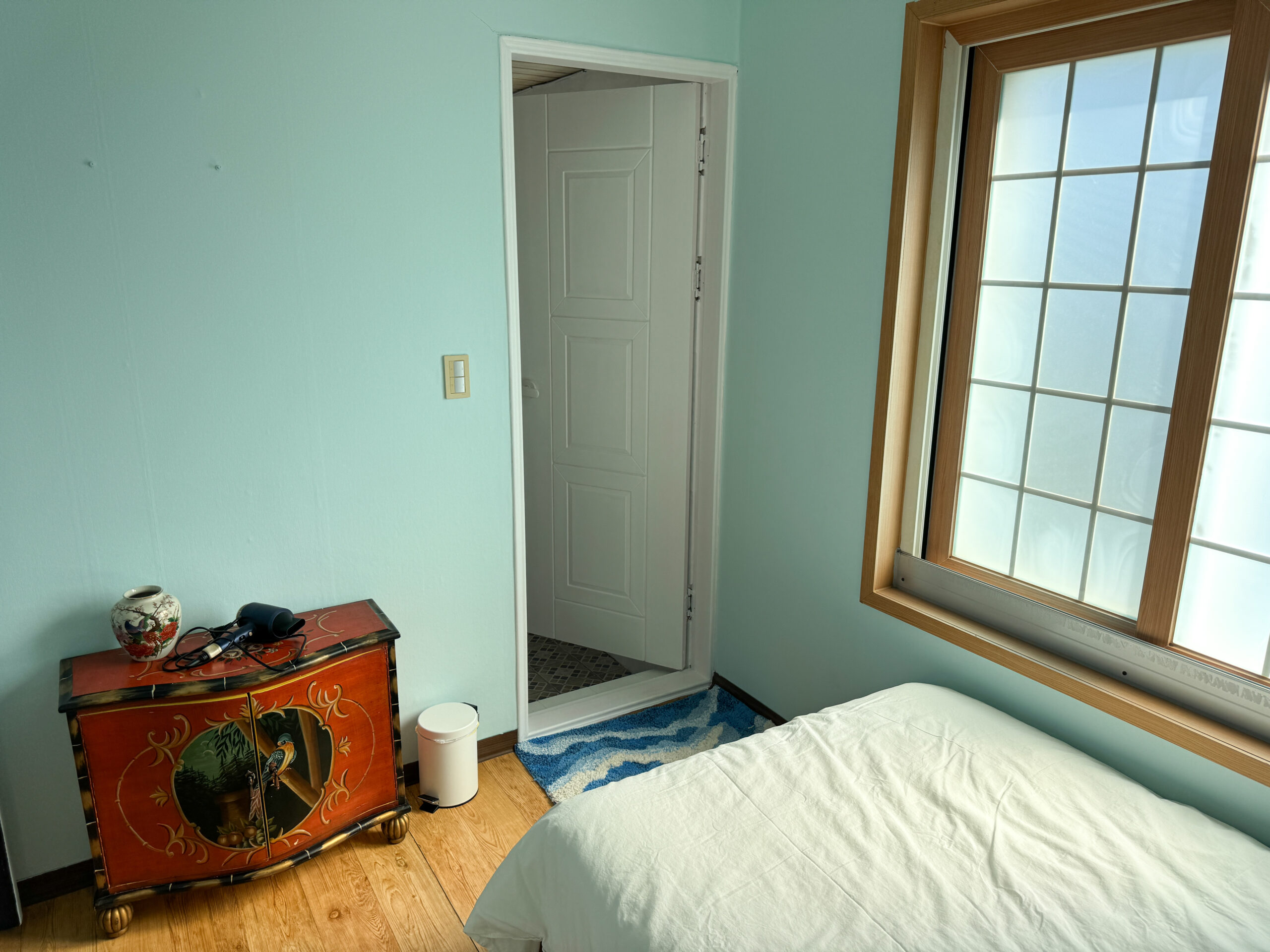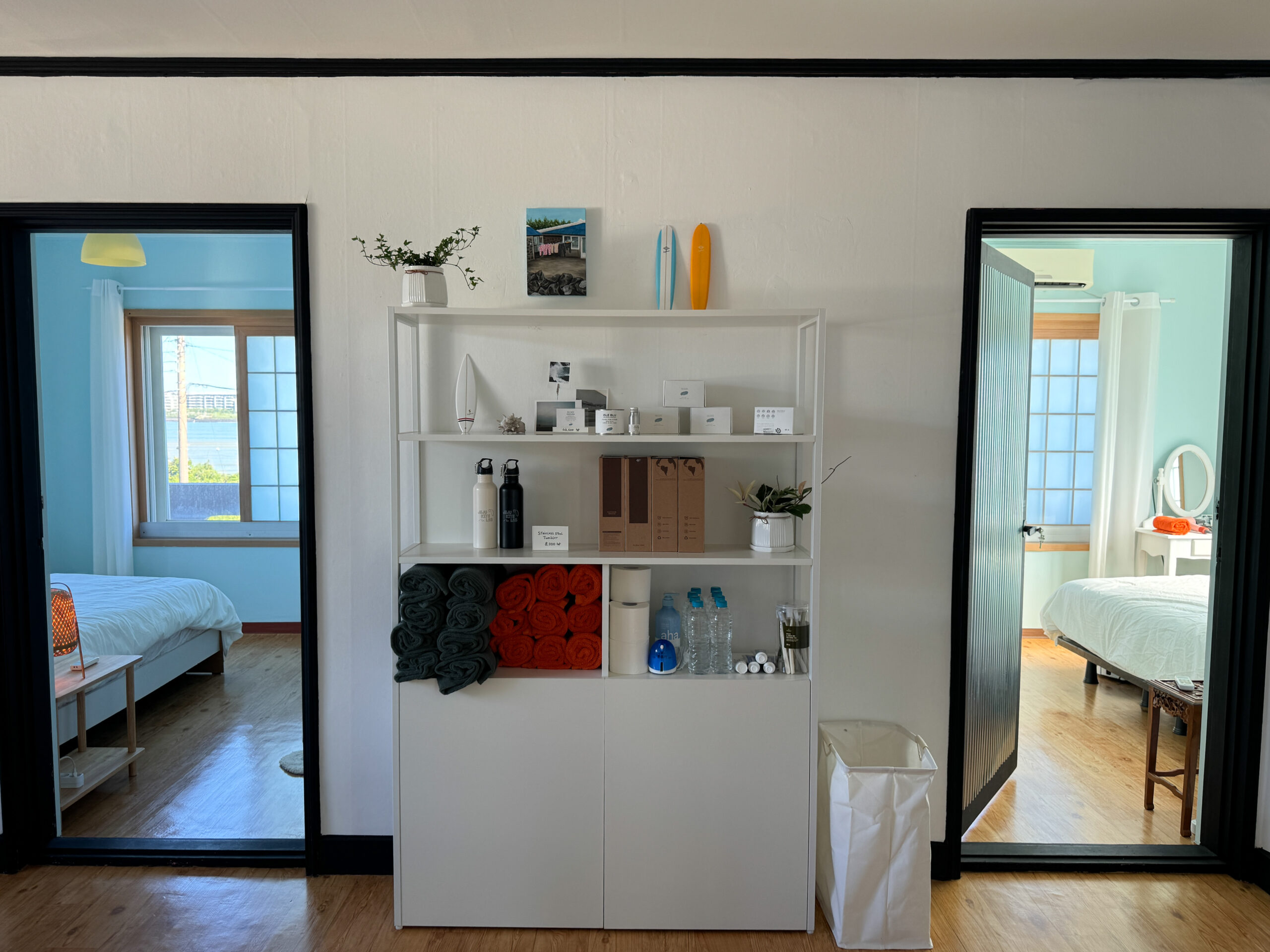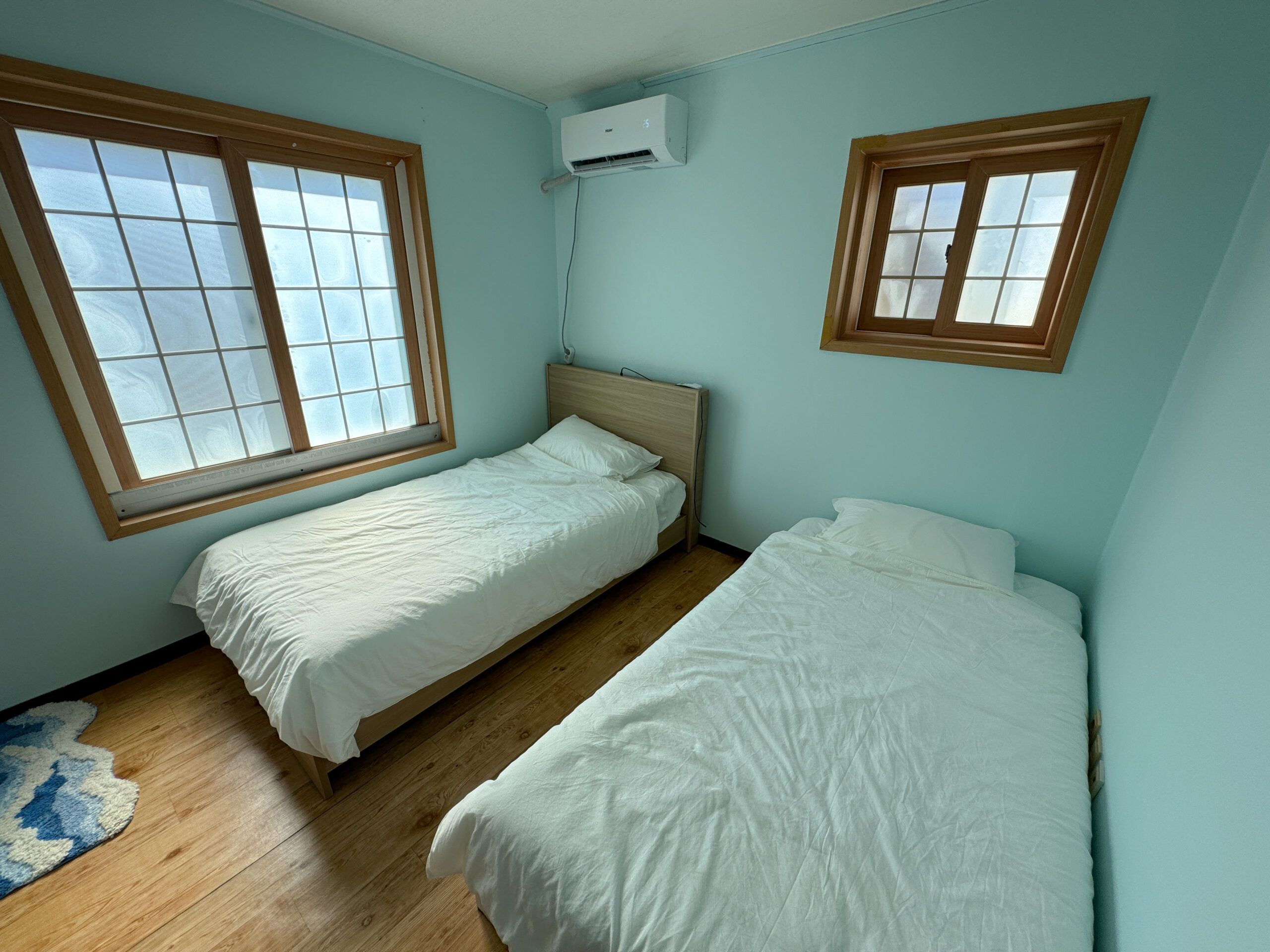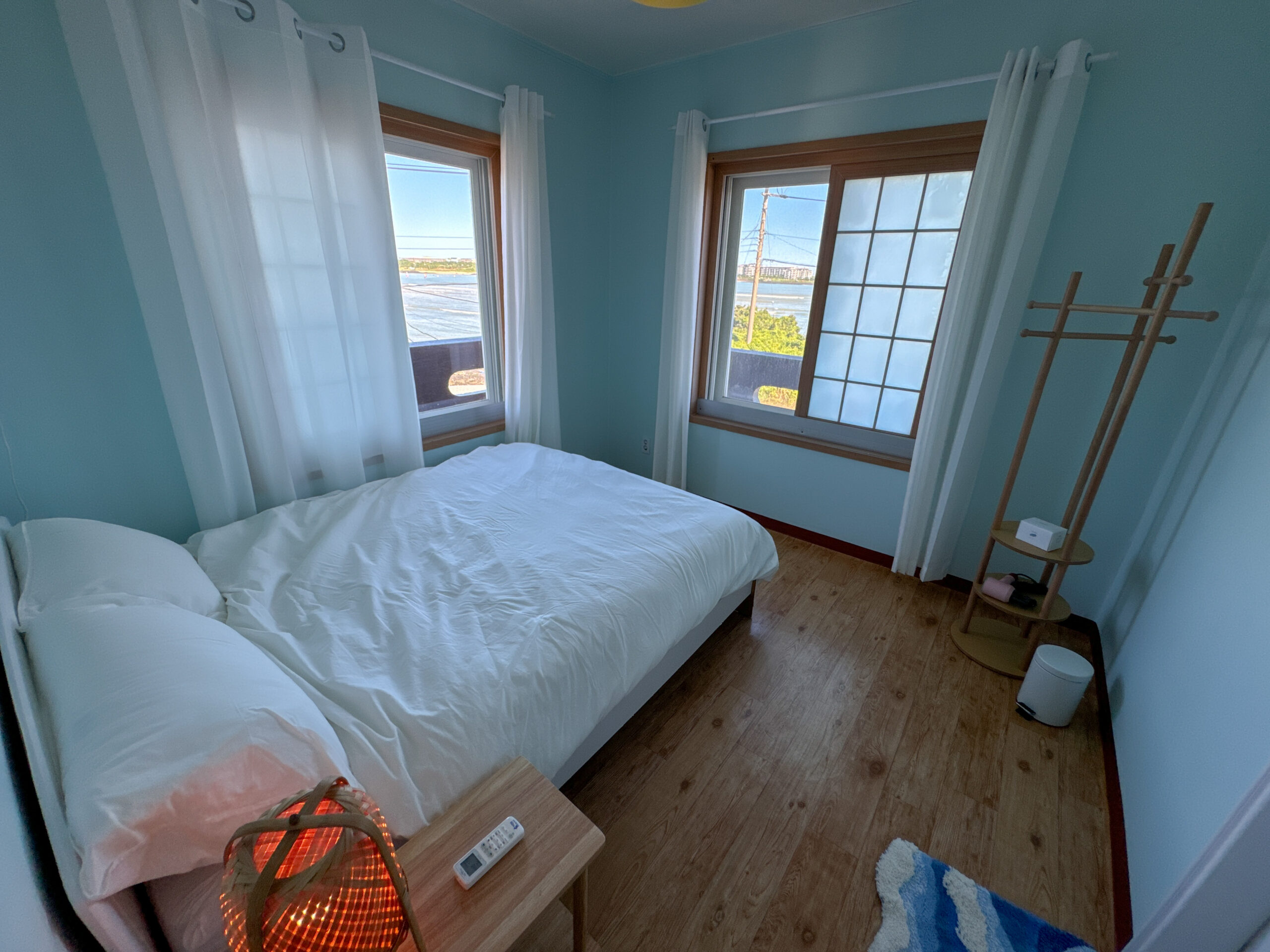 Wake up to the scenic views of Sinyang. The room has 2 super single beds, calming coastal vibes, with cotton bedding, a strong hair dryer and a custom locally made room scent.
