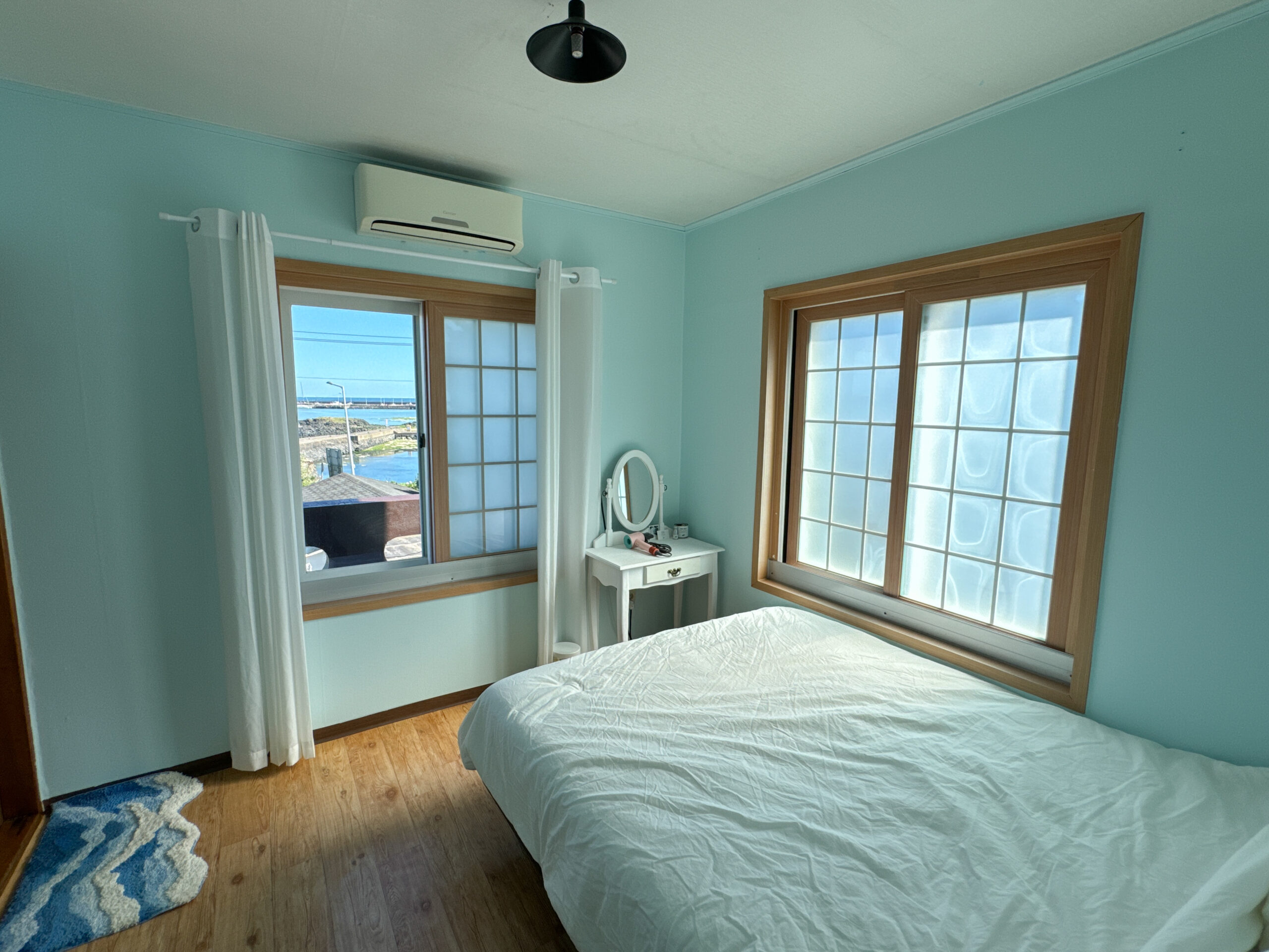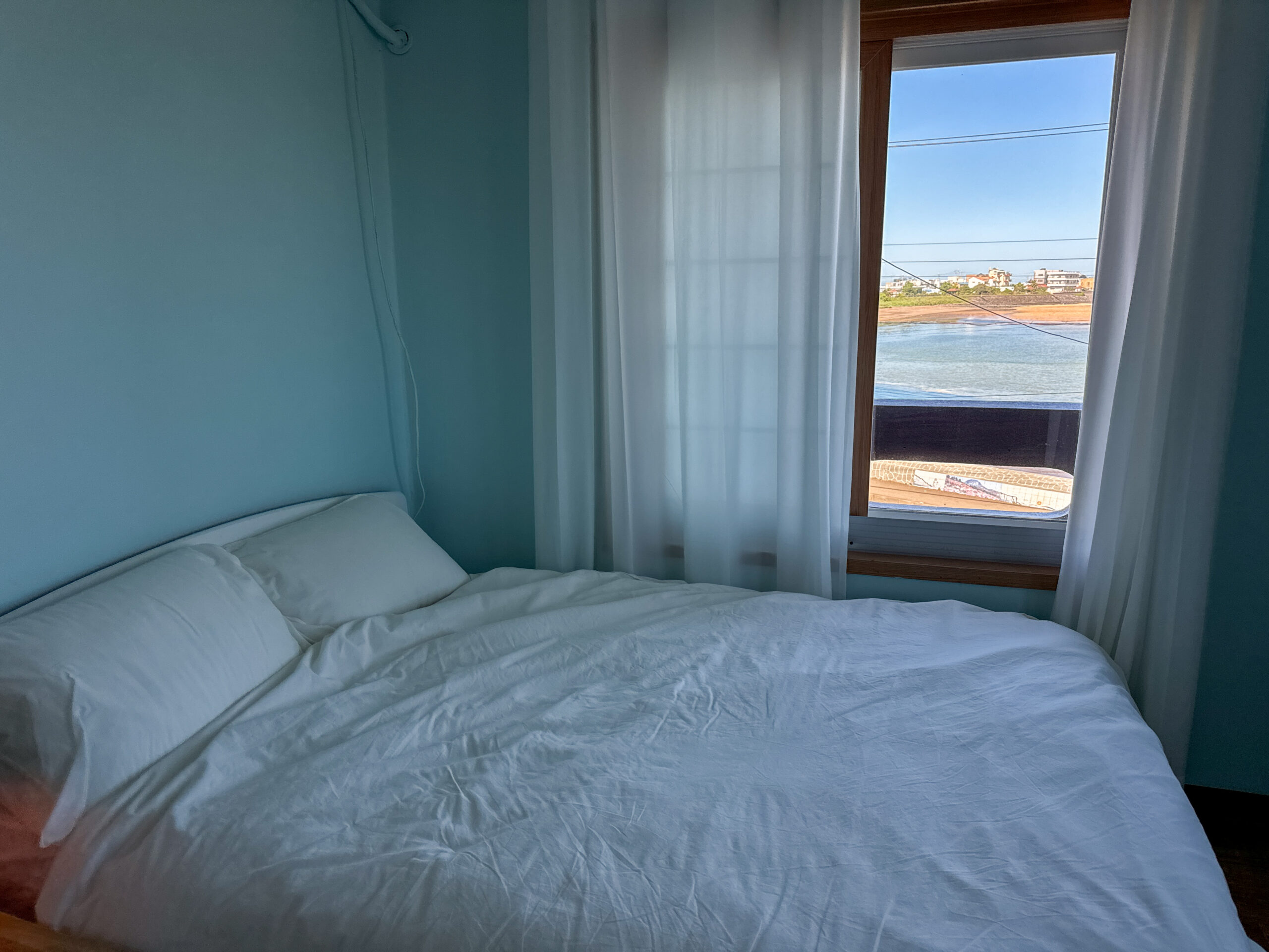 Wake up to the scenic views of Sinyang beach and the little harbor. The room has calming coastal vibes, with cotton bedding, a strong hair dryer and custom locally made room scent.